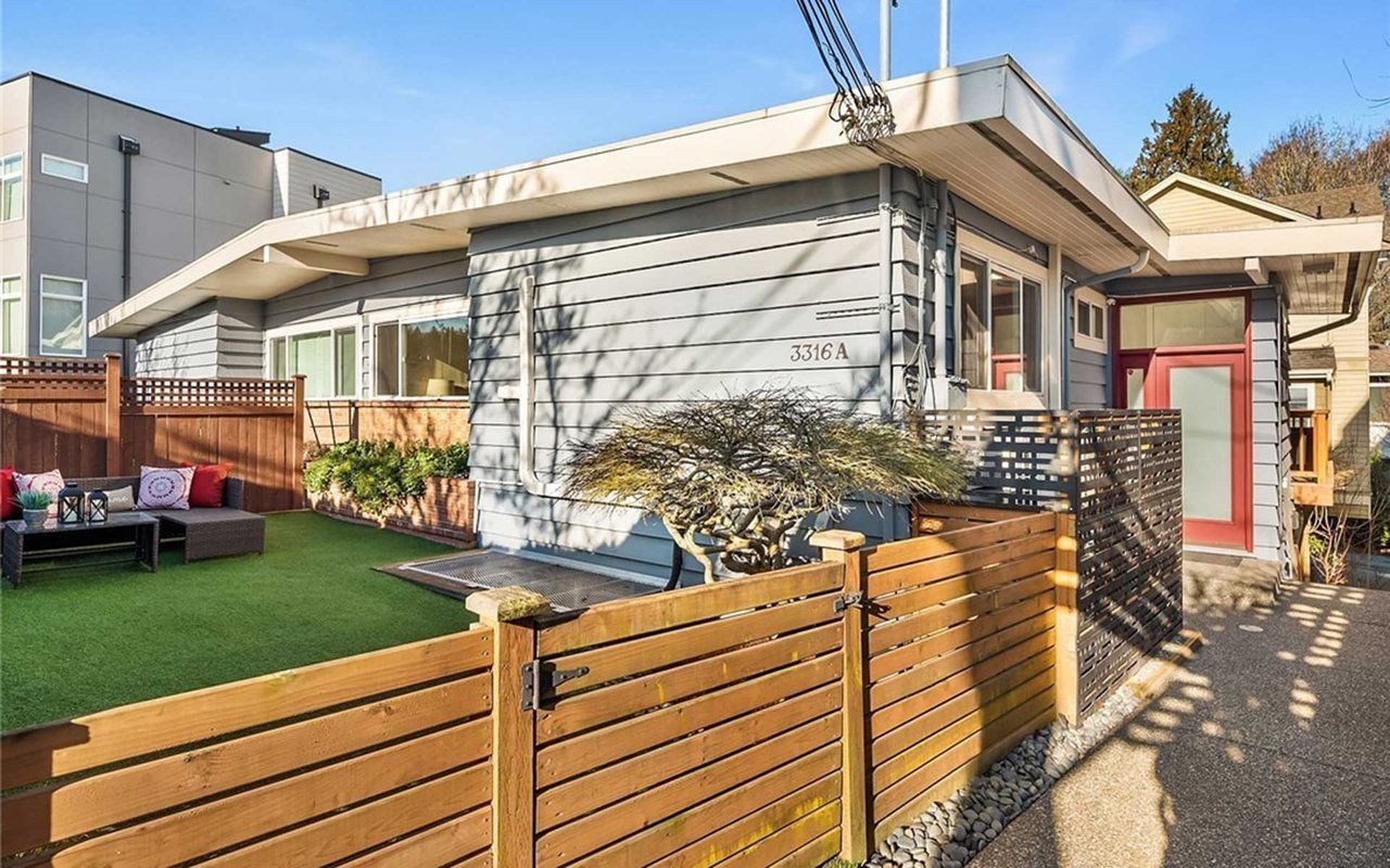 REPRESENTED BUYER: One-of-a-kind and move-in-ready Mid-Century Modern townhome with open floor plan and hardwood floors. Very spacious with over 2,200 sq. ft. of living space, incl. 4 bedrooms and 2 baths, living room with cathedral ceilings, brick fireplace, and large family room. Finished daylight basement has ample space for home office, gym, or whatever you desire. Upgraded in 2020, including top-of-the-line ductless mini-splits with A/C, beautiful cork floors in lower level, interior doors, molding, and fully relined sewer and drain lines. House hardwired with ethernet. Fenced outdoor space with artificial turf and mature landscaping for entertaining or playing, plus deck off kitchen for grilling and dining. Just blocks to Discovery Park and Locks! Off-street parking for 1 car and on transit lines.