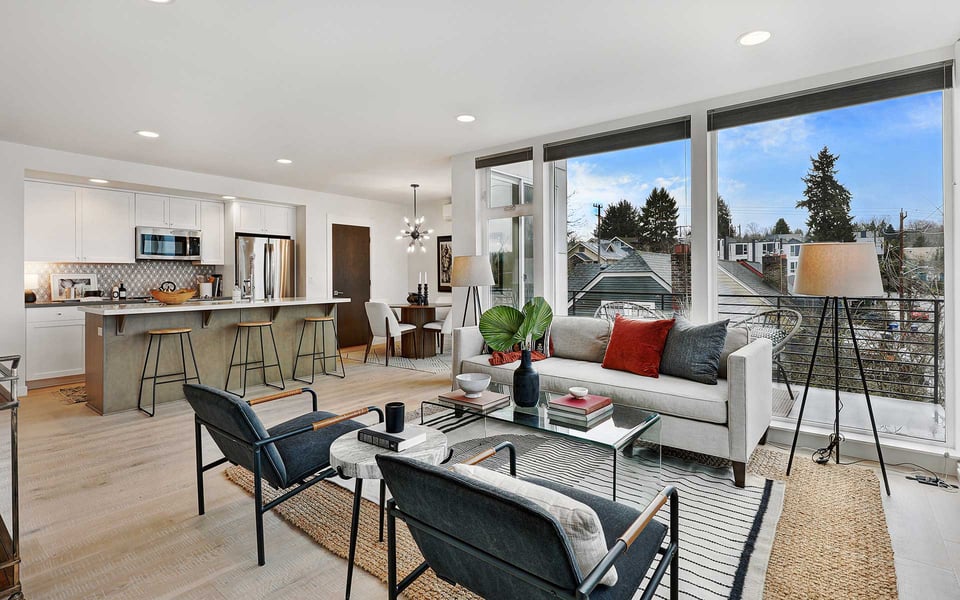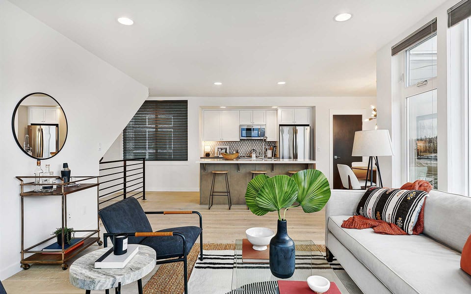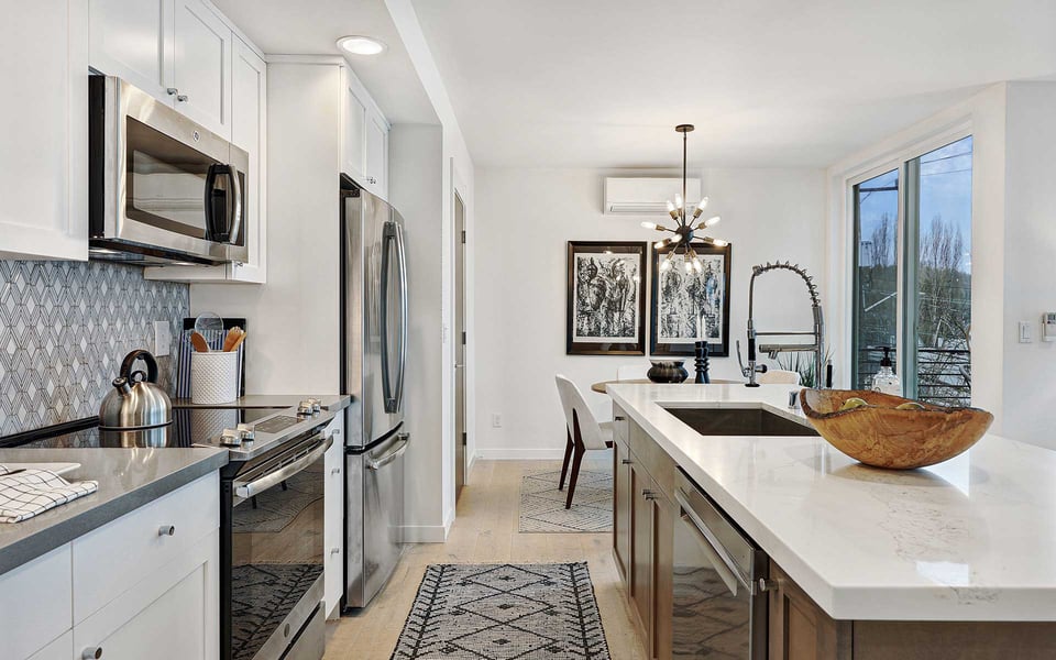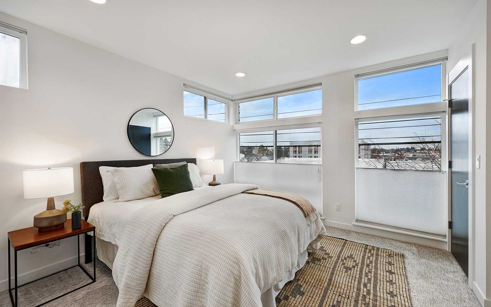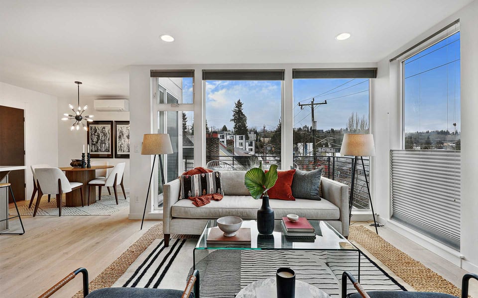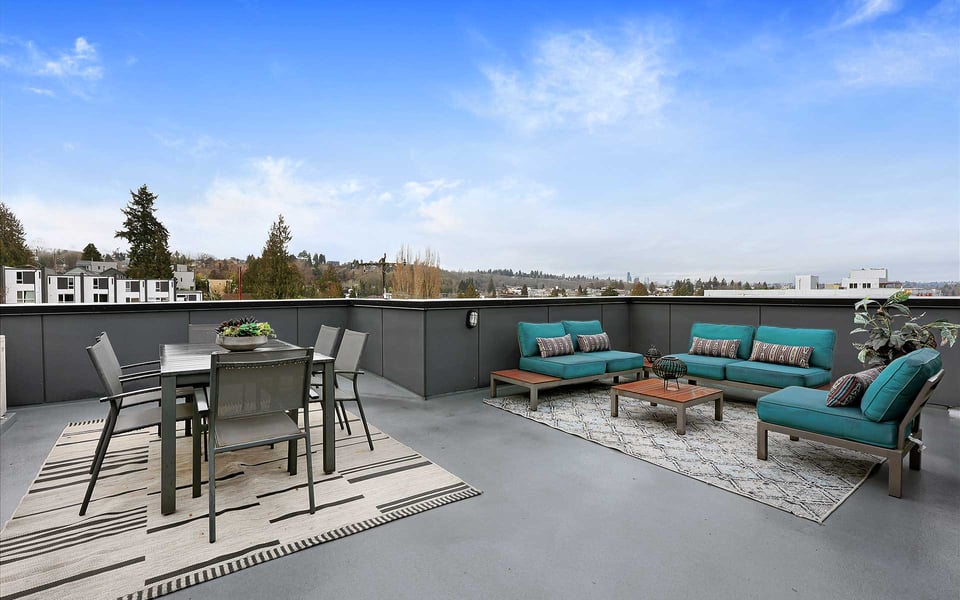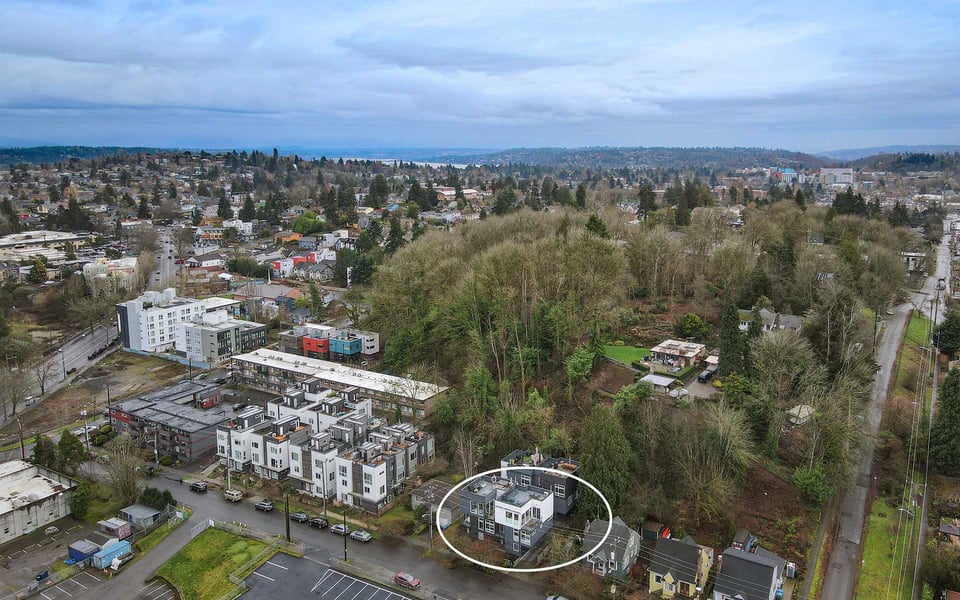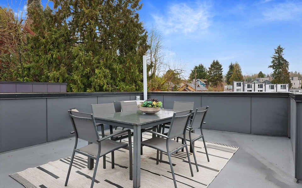 A refreshing reverse floor plan puts the main living area on the top level—where the light, privacy and views truly shine. Built in 2018, this modern 2-bed, 1.5-bath townhouse offers an easygoing layout that feels intentional without overcomplicating things. The 3rd floor living space is open and bright, framed by oversized windows and designed for connection between sleek kitchen with big island, dining and lounge zones plus a half bath keeping guests out of your personal space. Step outside to a rare deck directly off the living area—perfect for coffee mornings, sunset resets or letting fresh air do its thing. When the season turns a bit warm, you’re covered with mini-split AC. Downstairs, the 2nd floor offers a covered deck, 2 comfortable bedrooms with great light, including a primary with direct access to a spa-like full bath featuring dual vanity and tile surround. Above it all, a generous rooftop terrace delivers broader sightlines of the city and plenty of room to host a bigger crew. Whether it’s dinner parties, birthday hangs or just stretching out under the sky, this elevated outdoor space adds real flexibility and a sense of escape that’s hard to come by in townhome living. Yep, you’ll have the hard-to-find garage, but ditch the car, you’re in coveted Columbia City, a vibrant and diverse neighborhood with independent shops and restaurants where farmer’s markets and festivals cement the tight knit community. Hop a train downtown or the airport– commuting is a breeze.