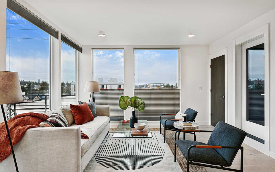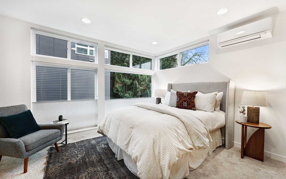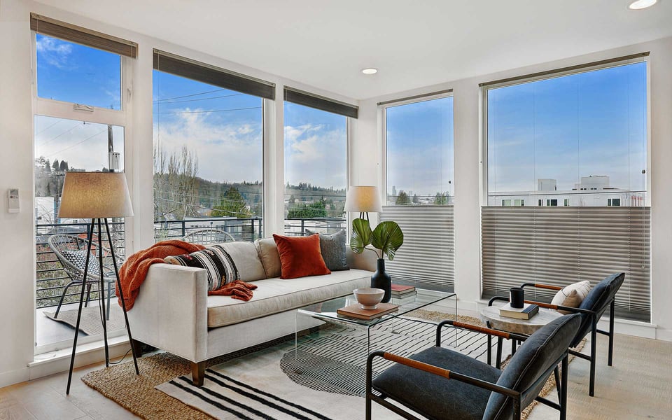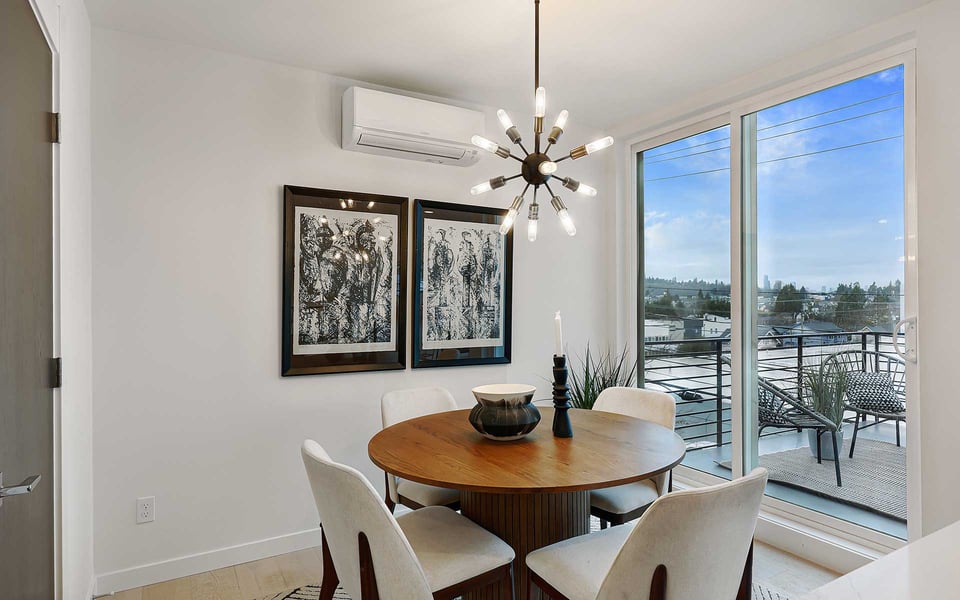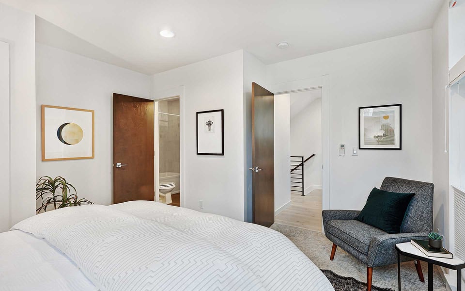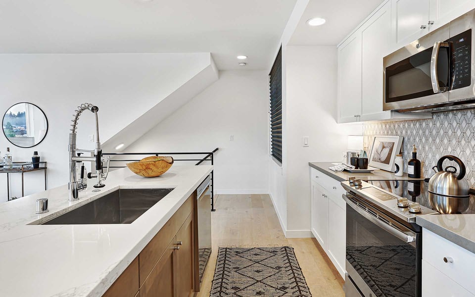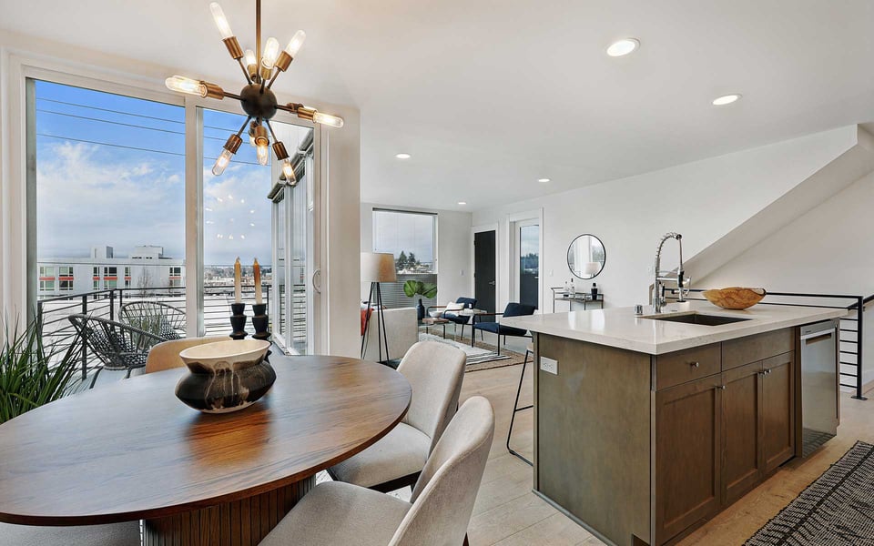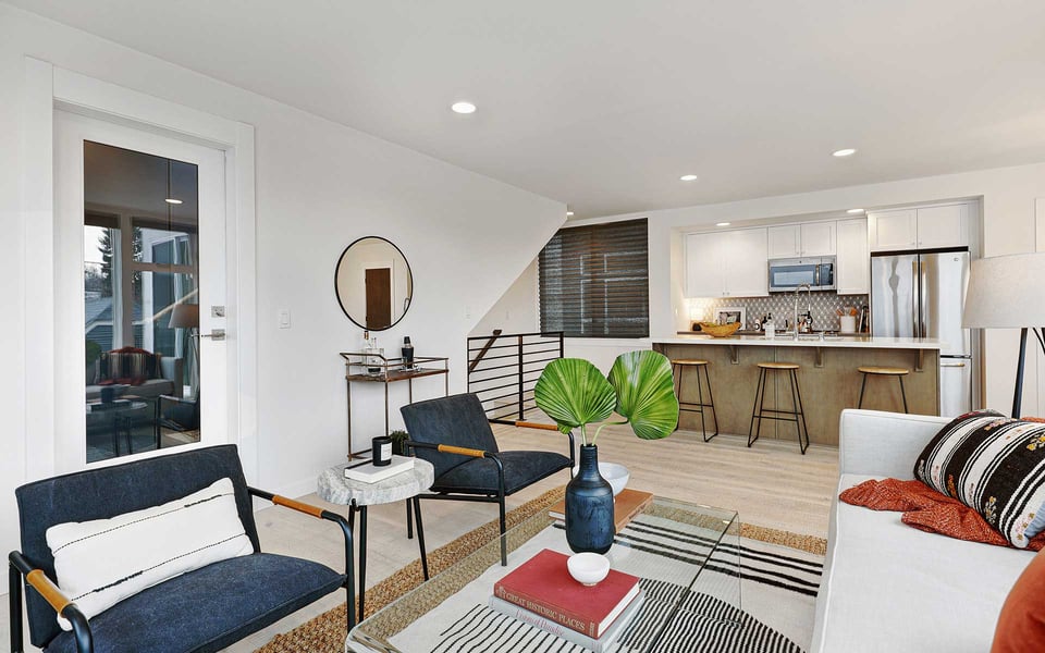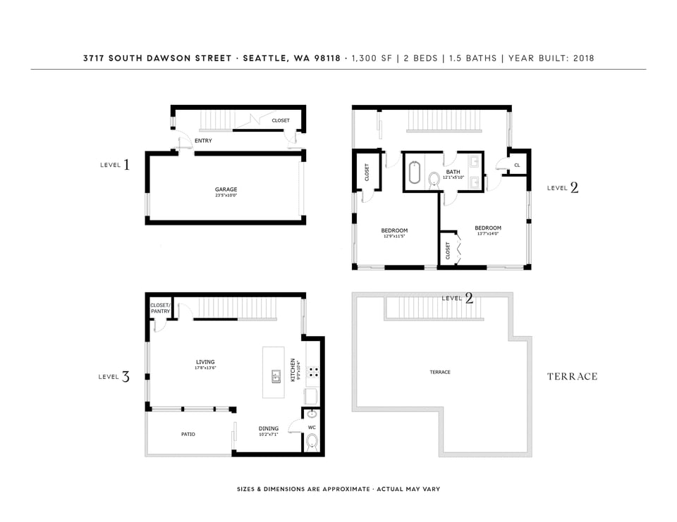 A refreshing reverse floor plan puts the main living area on the top level—where the light, privacy and views truly shine. Built in 2018, this modern 2-bed, 1.5-bath townhouse offers an easygoing layout that feels intentional without overcomplicating things. The 3rd floor living space is open and bright, framed by oversized windows and designed for connection between sleek kitchen with big island, dining and lounge zones plus a half bath keeping guests out of your personal space. Step outside to a rare deck directly off the living area—perfect for coffee mornings, sunset resets or letting fresh air do its thing. When the season turns a bit warm, you’re covered with mini-split AC. Downstairs, the 2nd floor offers a covered deck, 2 comfortable bedrooms with great light, including a primary with direct access to a spa-like full bath featuring dual vanity and tile surround. Above it all, a generous rooftop terrace delivers broader sightlines of the city and plenty of room to host a bigger crew. Whether it’s dinner parties, birthday hangs or just stretching out under the sky, this elevated outdoor space adds real flexibility and a sense of escape that’s hard to come by in townhome living. Yep, you’ll have the hard-to-find garage, but ditch the car, you’re in coveted Columbia City, a vibrant and diverse neighborhood with independent shops and restaurants where farmer’s markets and festivals cement the tight knit community. Hop a train downtown or the airport– commuting is a breeze.